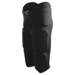 100% polyester double knit; 5-panel construction; 7 sewn-in EVA pads (hips, tail, thighs and knees); Perforated hip and tail pads for extra breathability; Thigh pads reinforced with plastic core; Contoured knee pads; Full-length self fabric belt with D-ring closure;